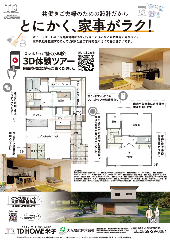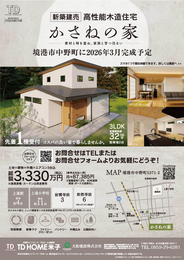 境港市中野町|高性能木造住宅「かさねの家」新築建売|TDホーム米子