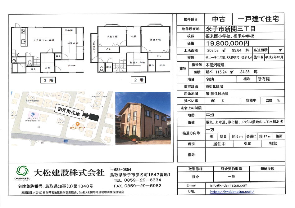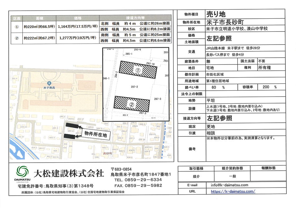 米子市立河崎小学校、加茂中学校校区です。建築条件あり